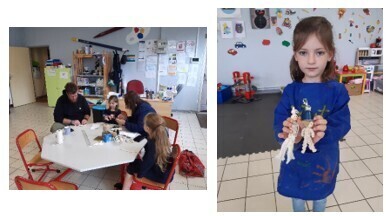 Art’Amis, ce n’est pas simplement des amies qui se retrouvent pour travailler de leurs mains ou avec leurs méninges, c’est aussi un partage intergénérationnel lors de nos interventions pendant les vacances à l’Accueil de Loisirs.
